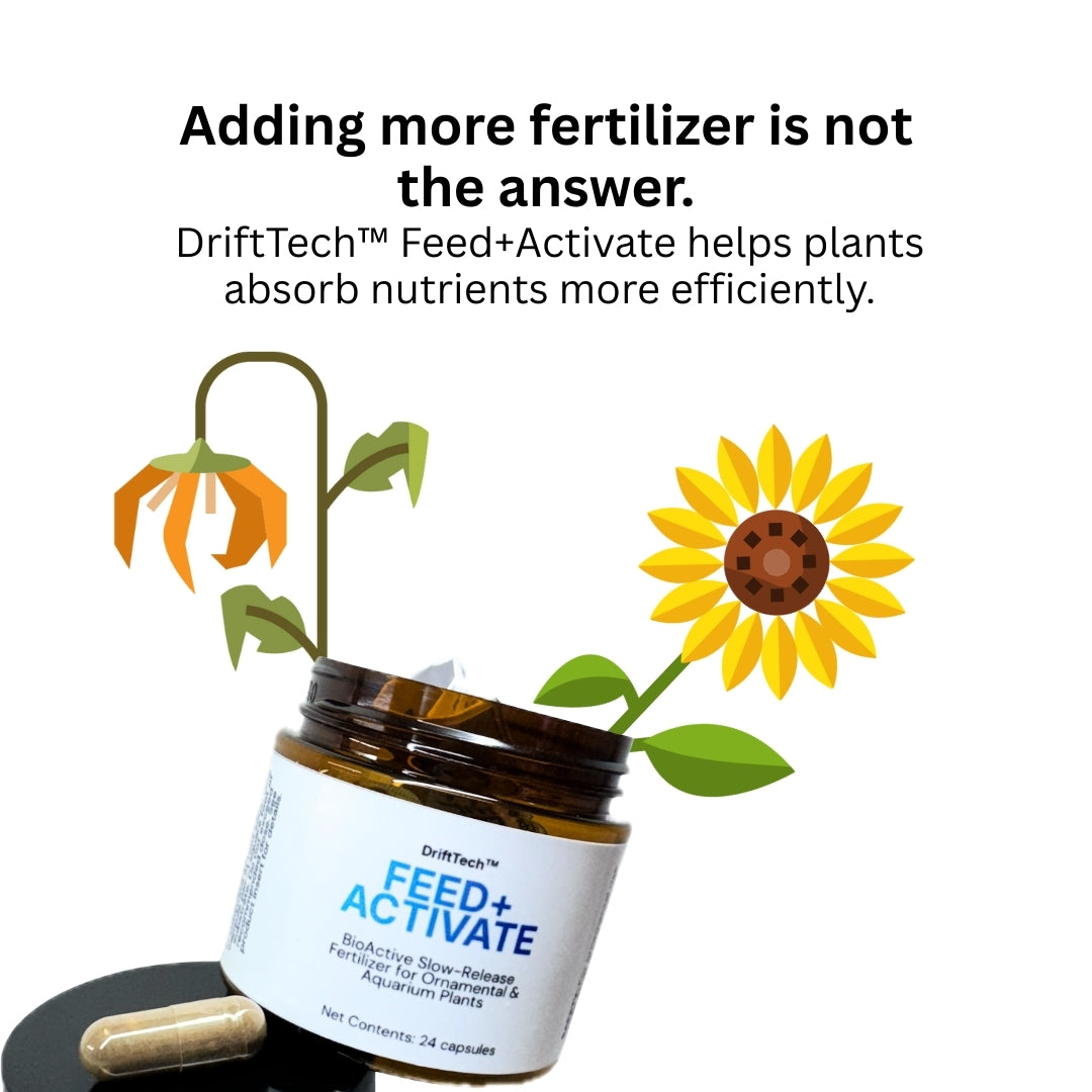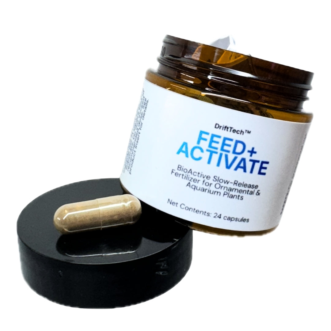 DriftTech™ Feed+Activate is a dual-action plant support system designed for ornamental plants and aquascapes. Each capsule delivers steady nutrients directly to the root zone while bioactive enhancers condition your plants for optimal growth and absorption. The synergy between nutrient release and bioactive support encourages strong roots, vibrant foliage, and overall plant health.